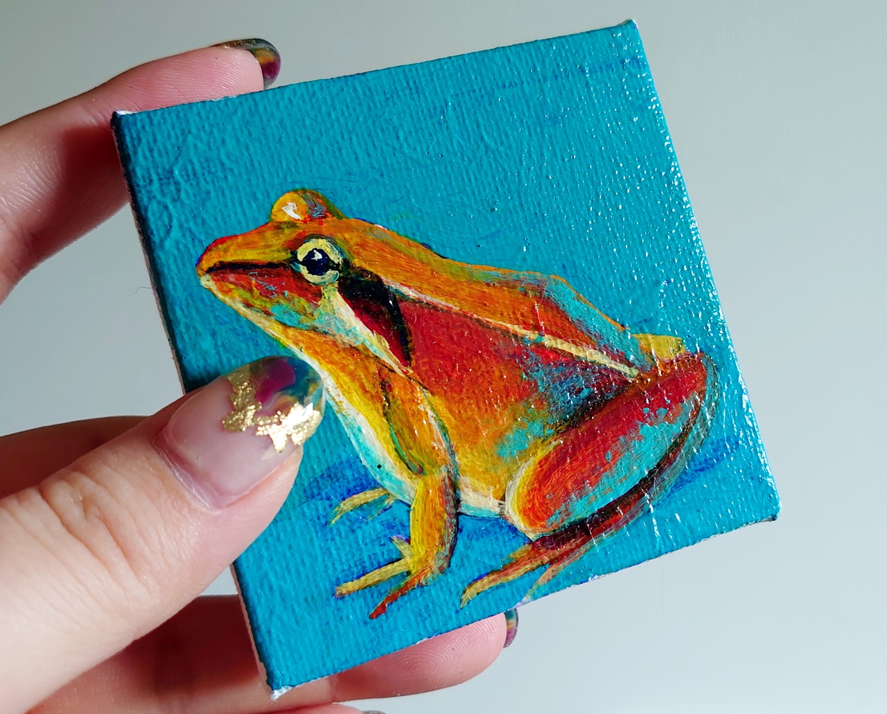 手乗り絵画「朱カエル」