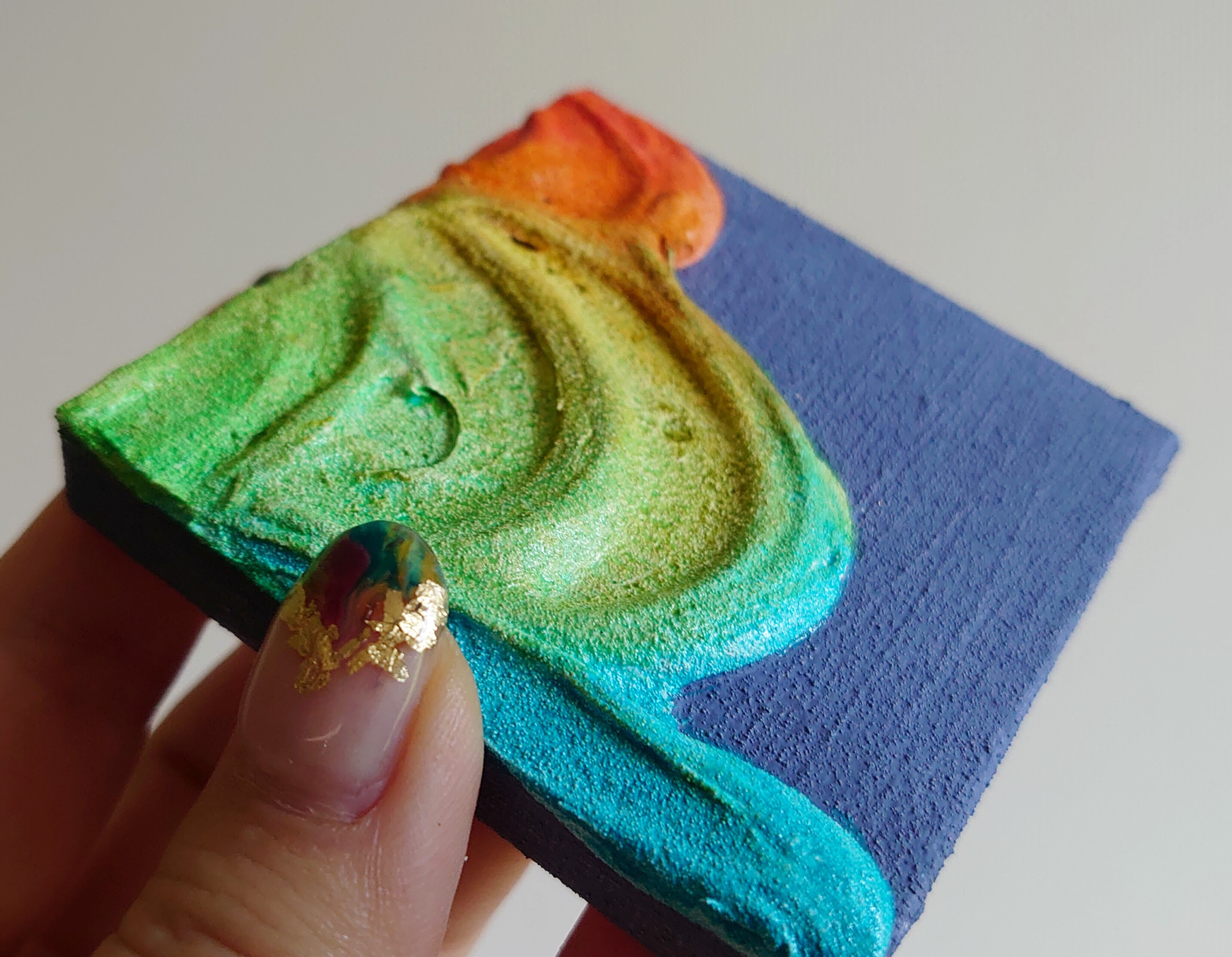 画材:キャンバスにジェッソ、モデリングペースト、アクリル絵の具で描写
